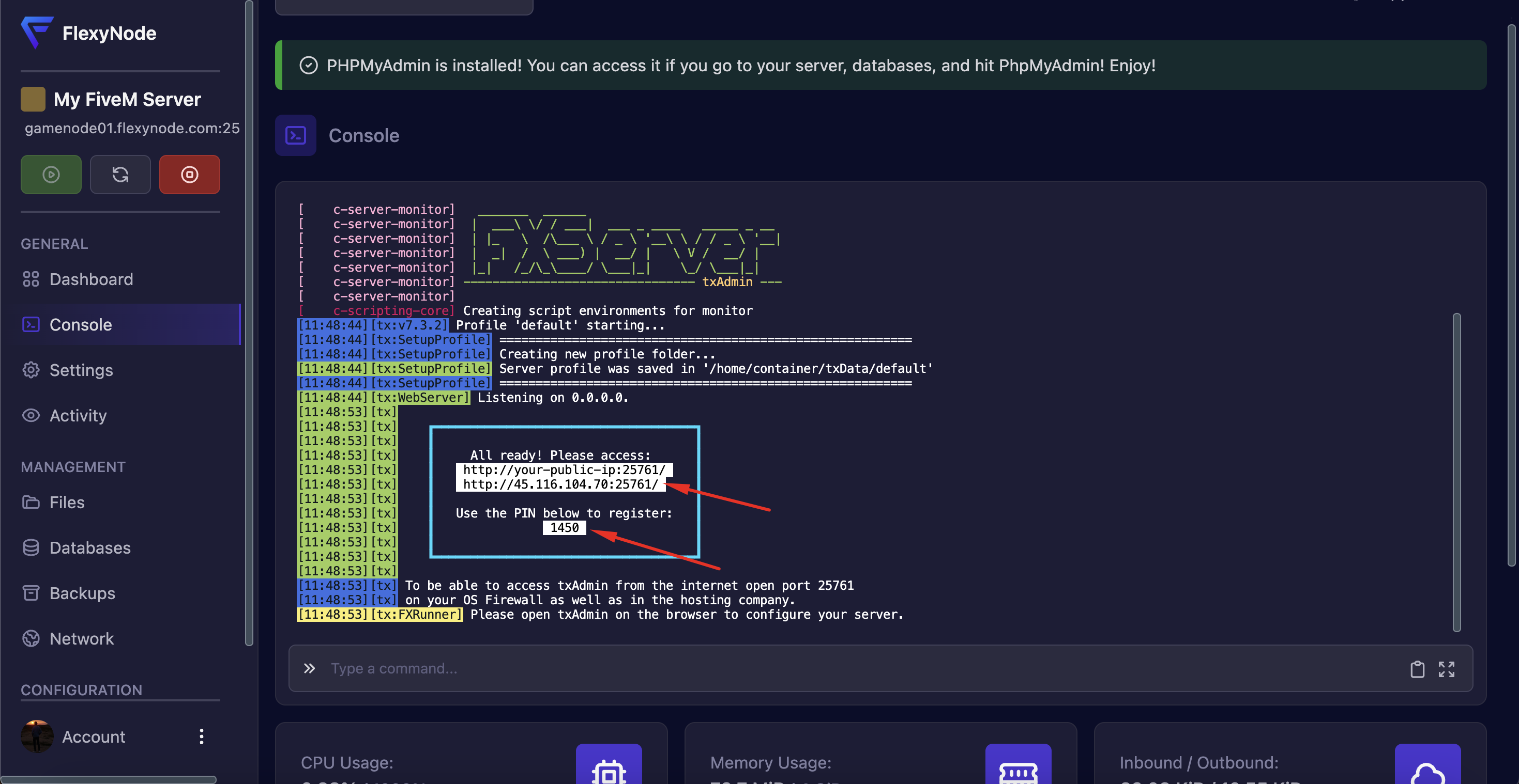 txAdmin is now configured on your FiveM server!